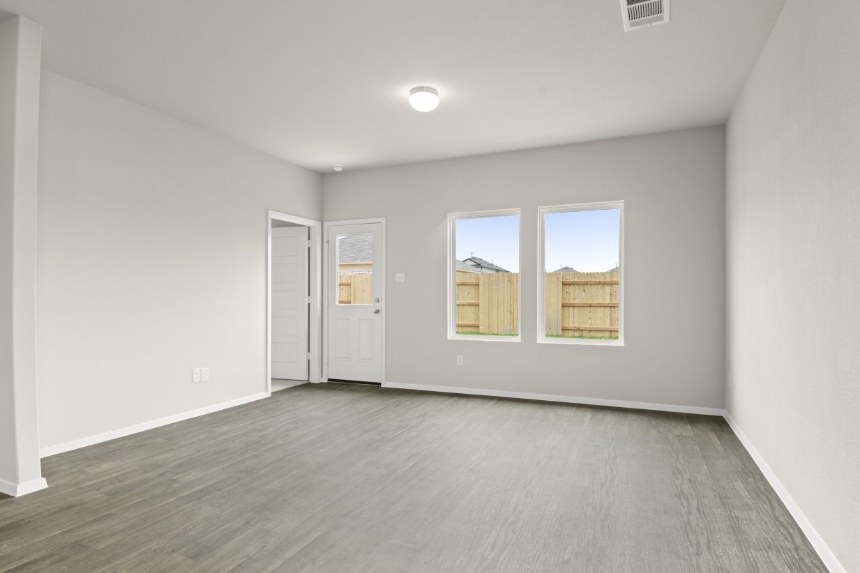 Welcome to 219 Estallo Way, located in the master-planned Hymeadow community, where modern living meets comfort in this one-story new home. Inside features premium finishes like wood-look vinyl flooring throughout the main living areas, raised bathroom vanities with Silestone countertops, white cabinets, vikrell surround for shower and tub, and a tankless water heater. The kitchen has 3 cm granite countertops, a corner pantry, and a garage access through the utility room for added convenience. Retreat to the primary suite where features such as the walk-in shower, walk-in closet, dual vanity, and semi-private water closet make it easy to unwind in comfort and privacy.